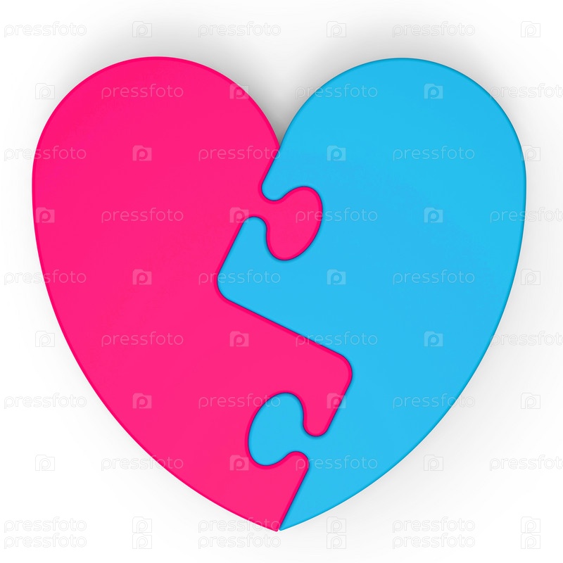 Пазлы двух цветов, сложенные в сердце