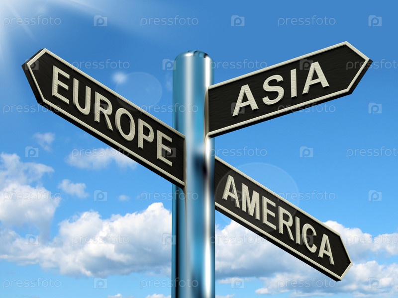 Указатели "Европа", "Азия", "Америка"