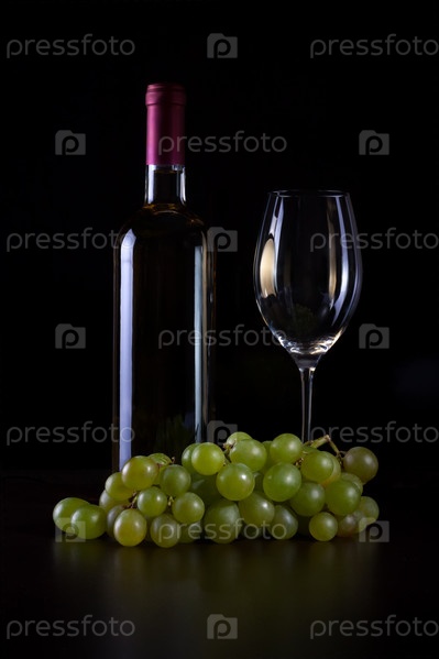 Бутылка вина и гроздь винограда