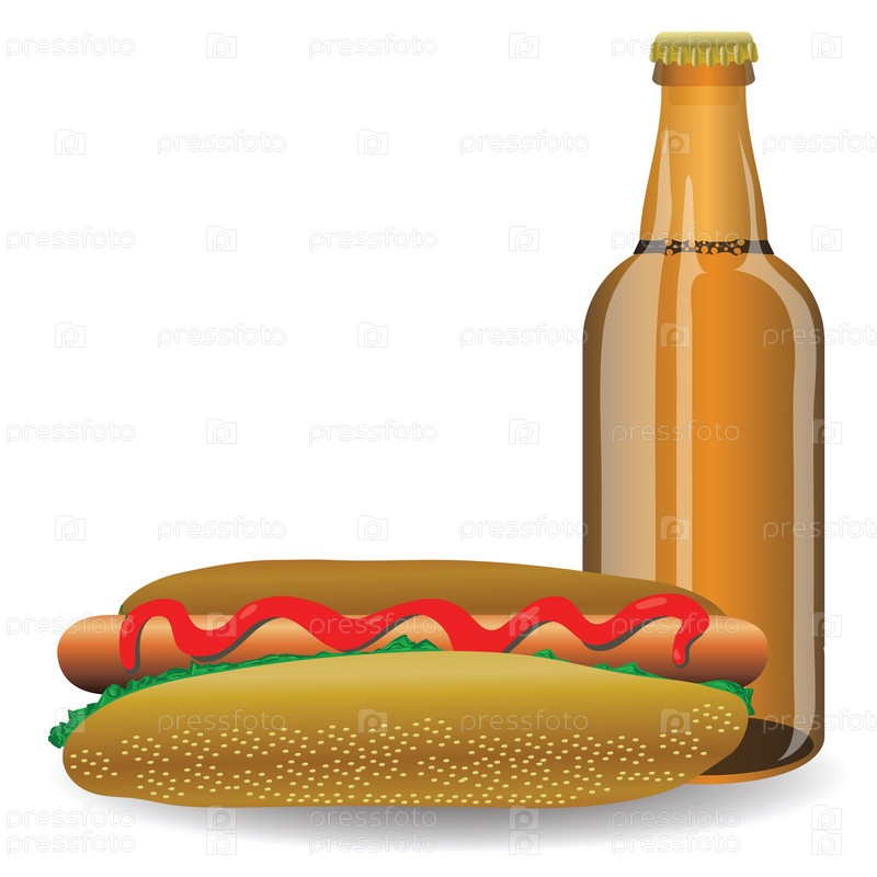 Хот-дог и бутылка пива