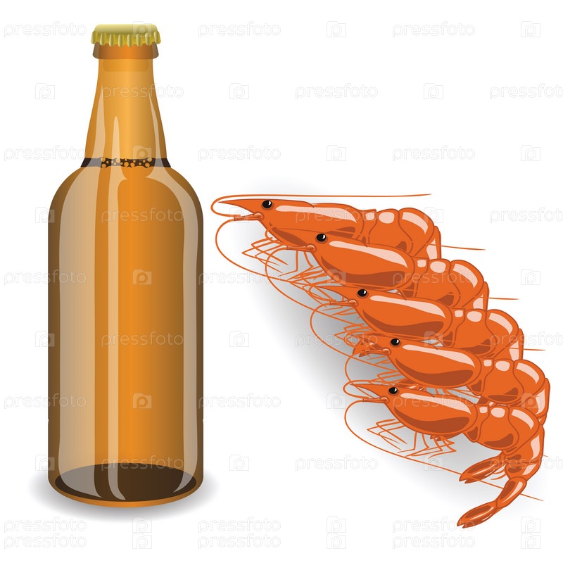 Бутылка пива и креветки