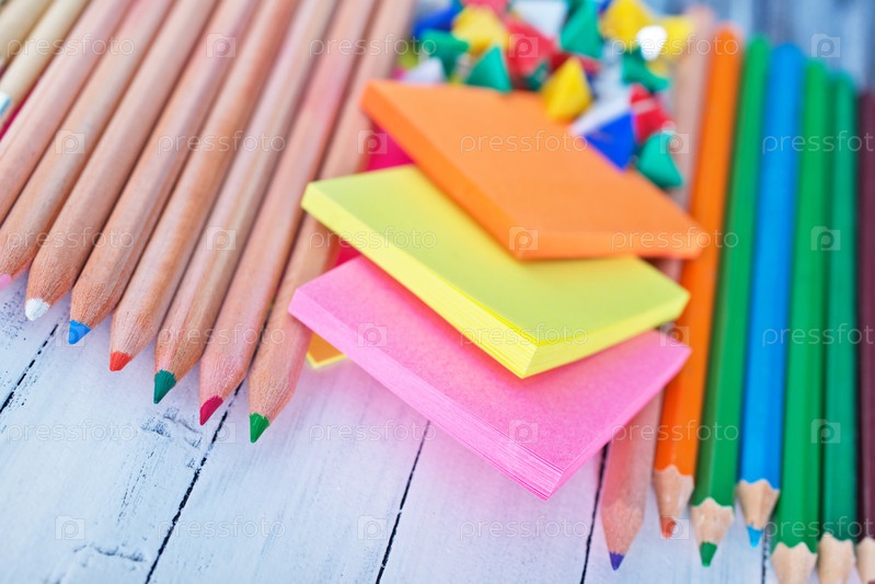 Цветные карандаши и стикеры