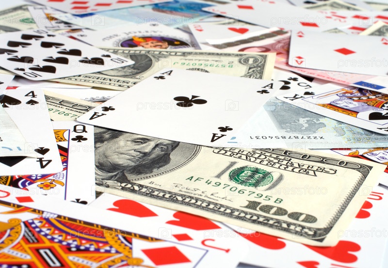 Фон с банкнот и игральных карт вблизи