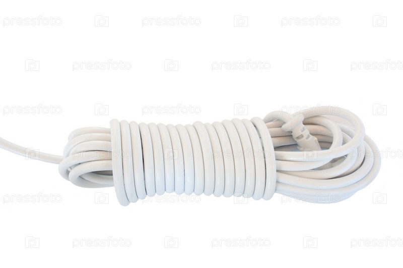 Белый свернутый шнур на белом фоне