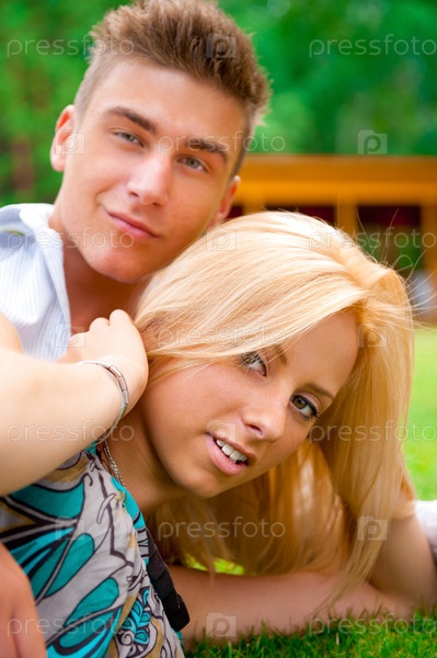 Портрет молодой пары в парке