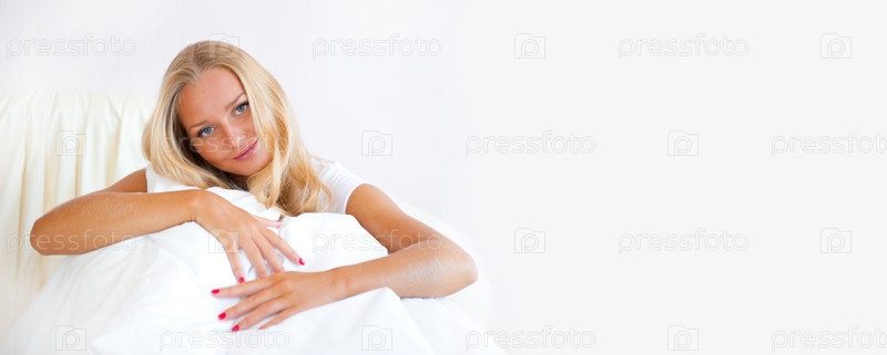 Портрет красивой девушки, которая лежит в кровати