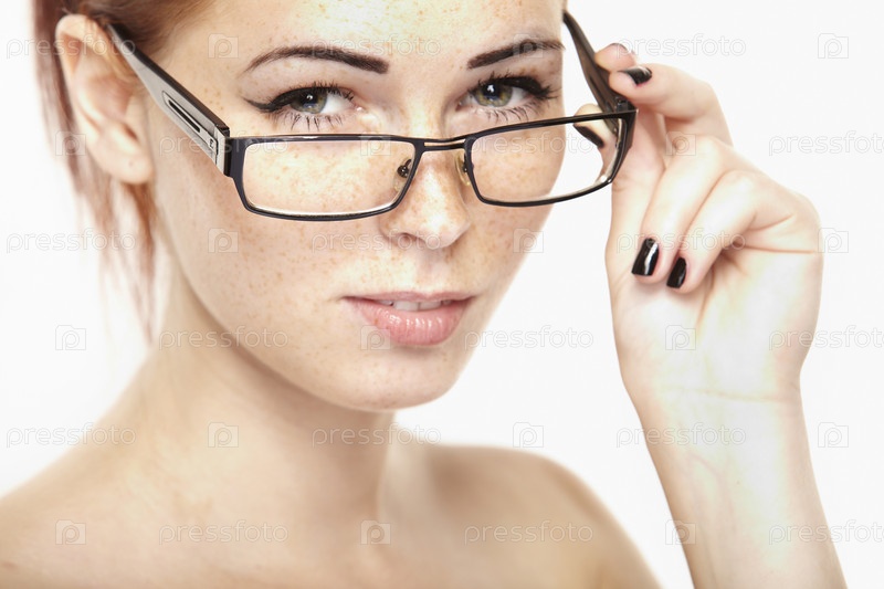 Портрет красивой девушки с веснушками в очках