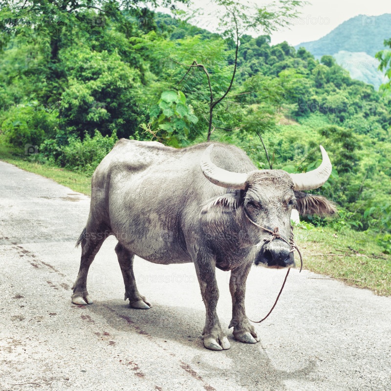 Азиатский буйвол на дороге