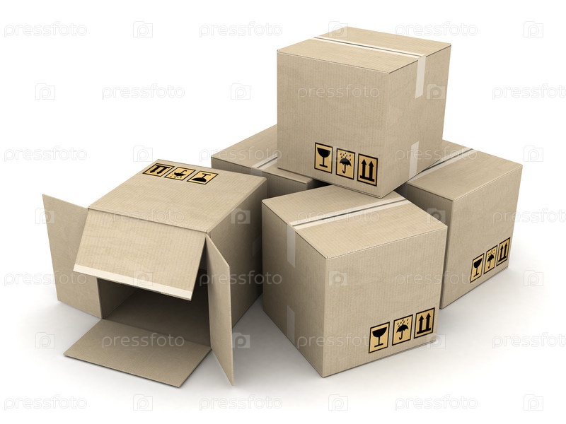 Картонные коробки на белом фоне