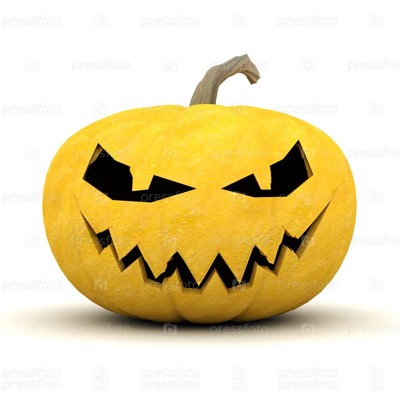 Зловещая тыква для Хэллоуина на белом фоне