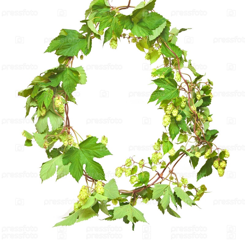 Ветка хмеля на белом фоне
