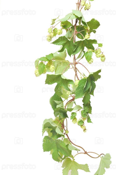 Ветка хмеля на белом фоне