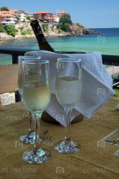 Шампанское на столе в ресторане под открытым небом