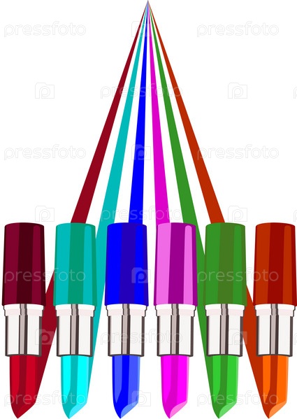 Разноцветные губные помады на белом фоне
