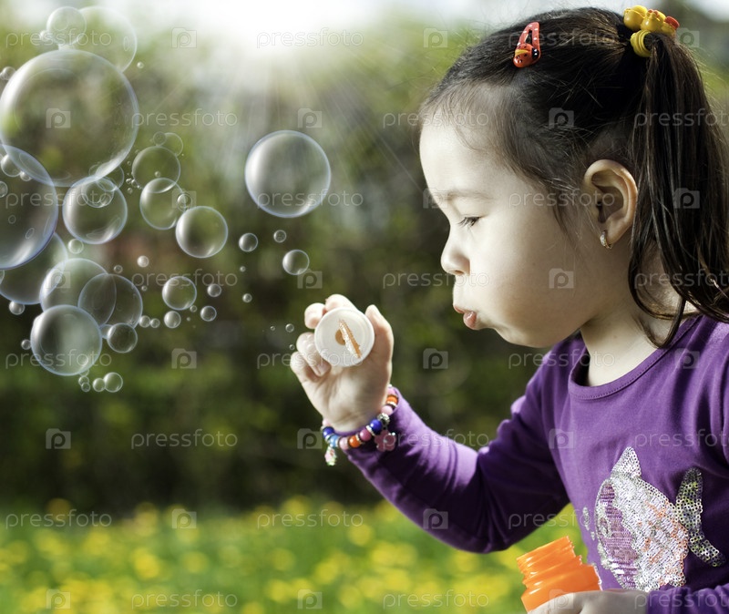 Портрет маленькой красивой девочки с мыльными пузырями