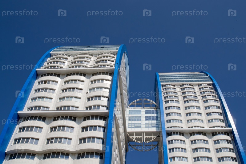 Современные высотные здания на фоне синего неба. Россия, Волгоград