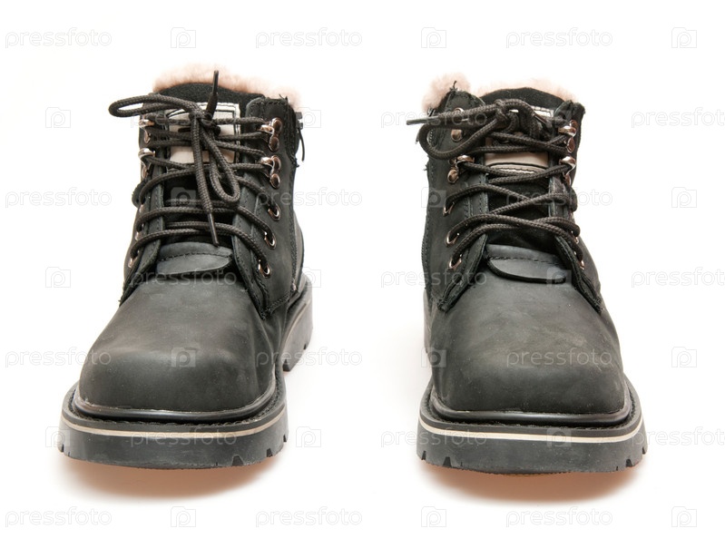 Черные зимние ботинки на белом фоне