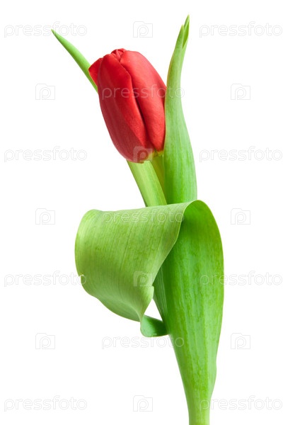 Один красный тюльпан на белом фоне