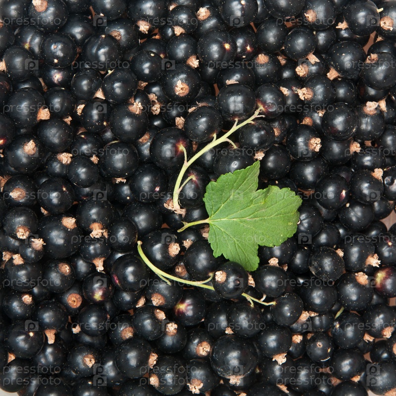 Черная смородина с зеленым листиком в качестве фона