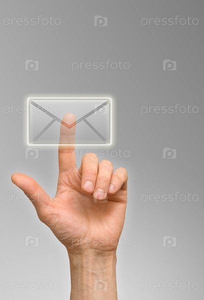 Мужская рука нажимает на значок конверта