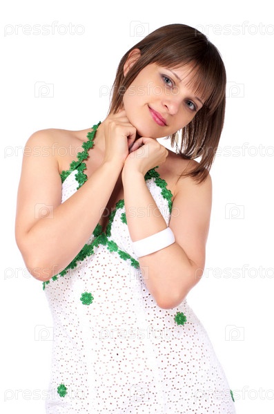 Женщина в белом платье на белом фоне