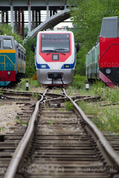 Старые и современные поезда на станции