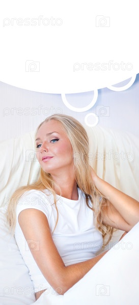 Портрет красивой девушки, которая лежит в кровати