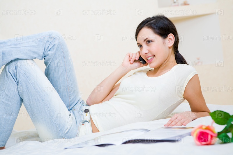 Изображение красивой подростки, разговаривающей по телефону в хорошем настроении
