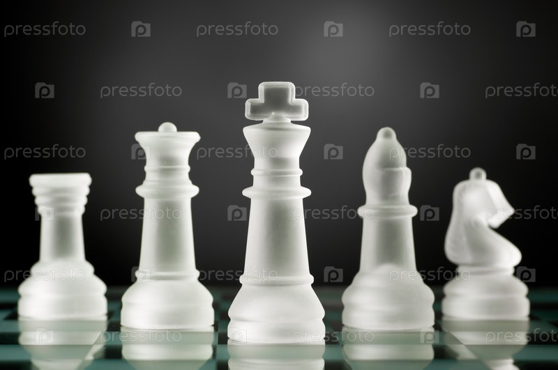 Стеклянные шахматные фигуры на черном фоне