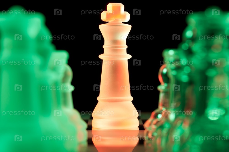 Стеклянные шахматные фигуры на черном фоне