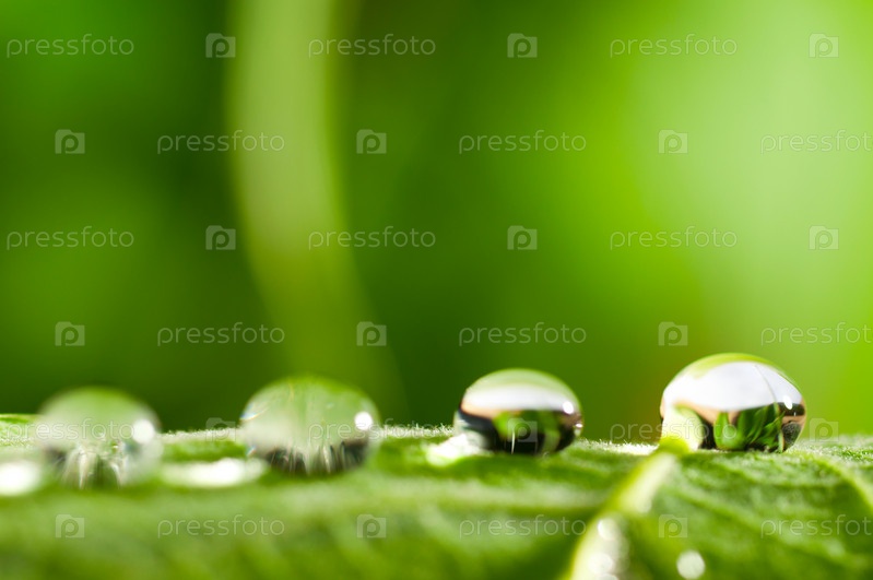 Роса на зеленых листочках крупным планом