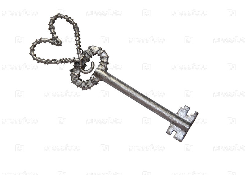 Серебристый ключ с сердечком изолирован на белом