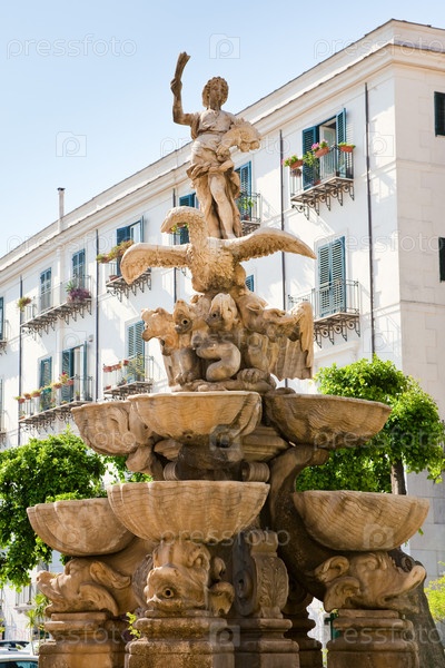 Статуя в стиле барокко - фонтан в Палермо, Италия