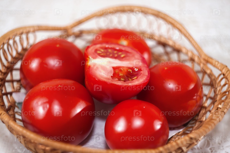 Помидоры в плетеной корзинке