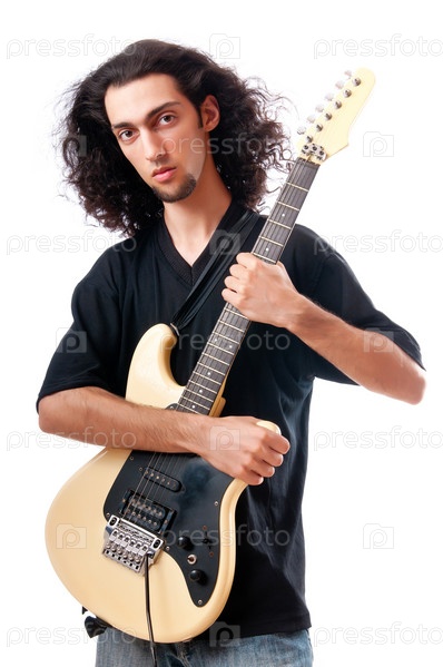 Гитарист на белом фоне
