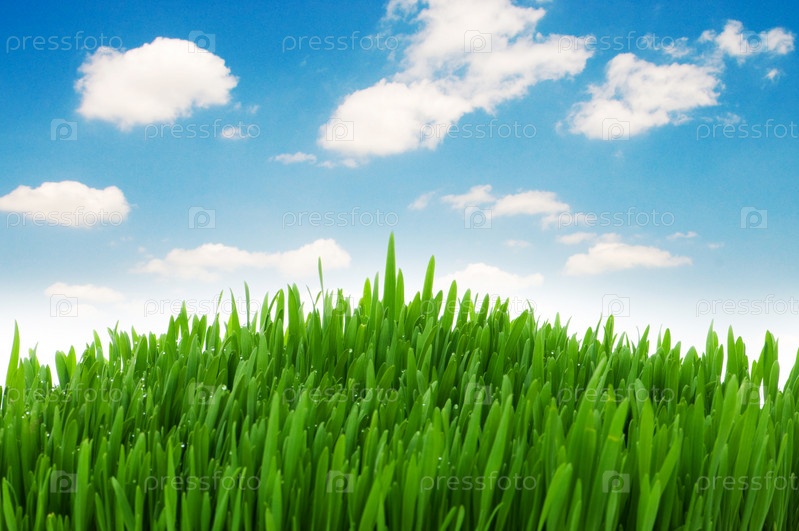 Зеленая трава под голубым небом