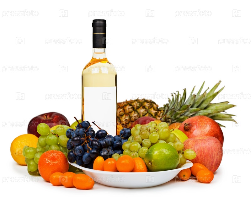 Натюрморт - бутылка белого вина и фрукты