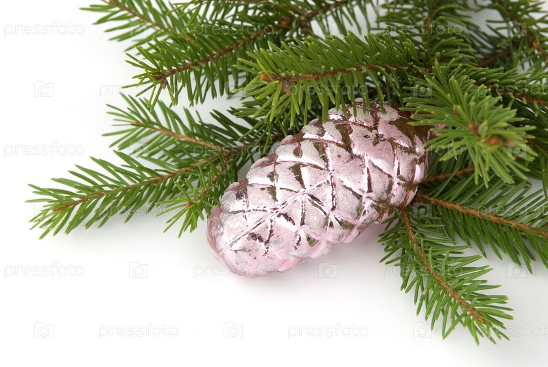 Ветка рождественской елки на белом