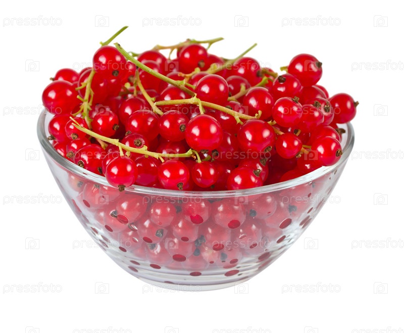 Красная смородина в стеклянной чашке на белом фоне