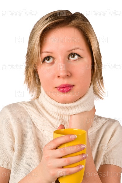 Красивая девушка с желтой кружкой в руке