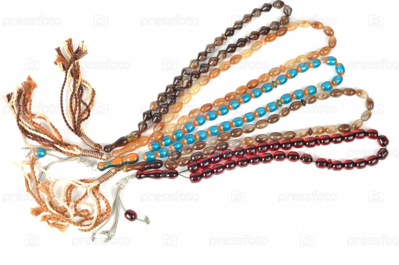 Мусульманские четки на белом фоне