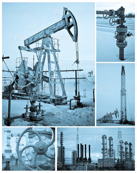 Нефтедобывающая промышленность. Монохромный коллаж
