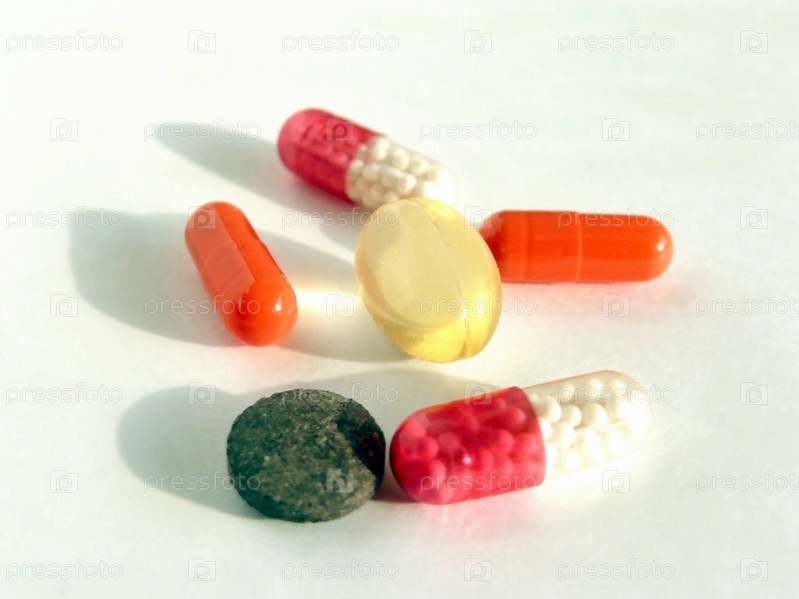 Различные виды таблеток на белом фоне