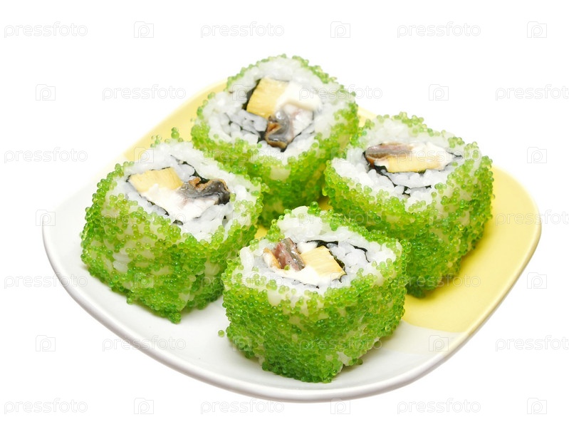 Японские суши-роллы на тарелке