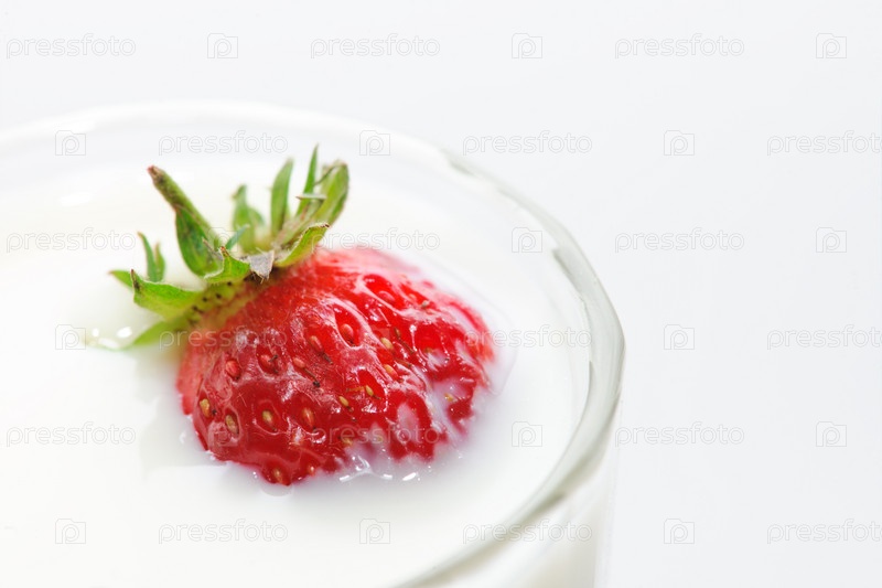 Спелая клубника с молоком