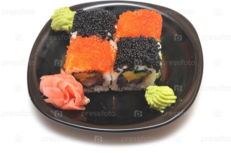 Суши на черной тарелке