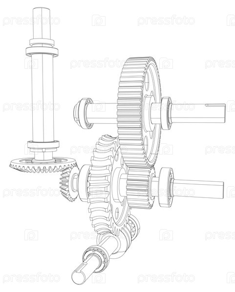 Зубчатые колеса с подшипниками и валами. Вектор