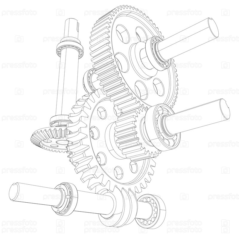 Редуктор из передач, подшипников и валов. Вектор