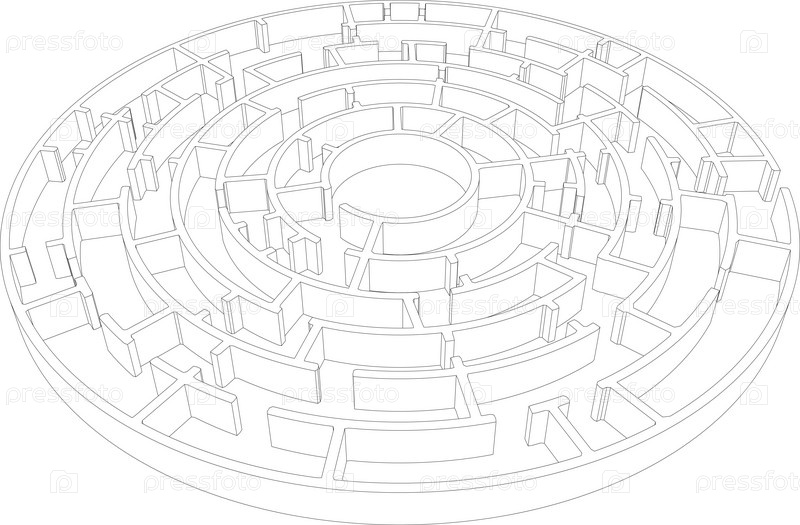 Эскиз круглого лабиринта. Вектор
