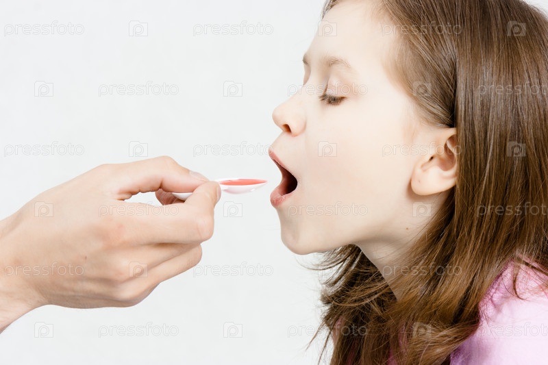 Девочка пьет лекарственный сироп